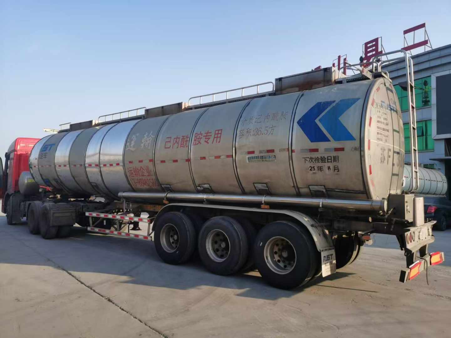 梁山二手車市場內中集瑞江鋁合金保溫罐,公告36.5方,17年12月出廠,瑞江專用橋3個鋼圈9個鋁圈,,輪胎七成新。介質:食用油。有需要二手鋁合金保溫罐的可以來選購。